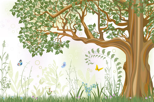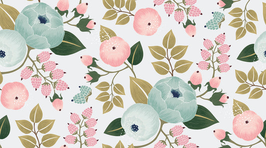 Blush Botanical Forest Mural - Soft Pink and Gray Nature Design