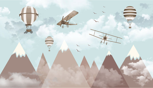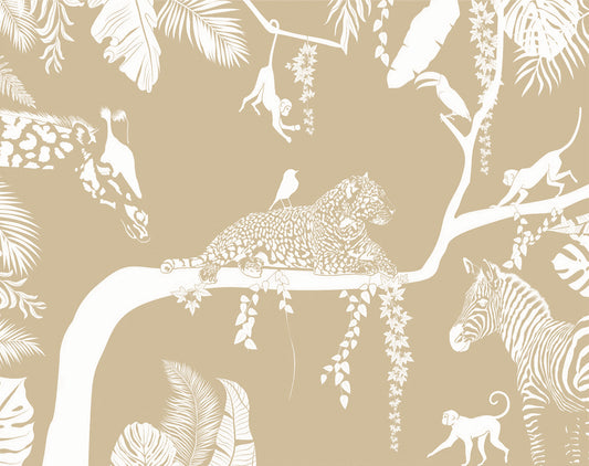 Artistic Jungle Animals Mural in Beige and White Tones for Kids' Decoration