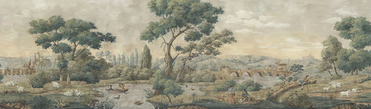 Ancient Oriental Mural of a Bustling Chinese Port City