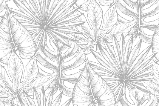 Monochrome Botanical Leaf Sketch Mural