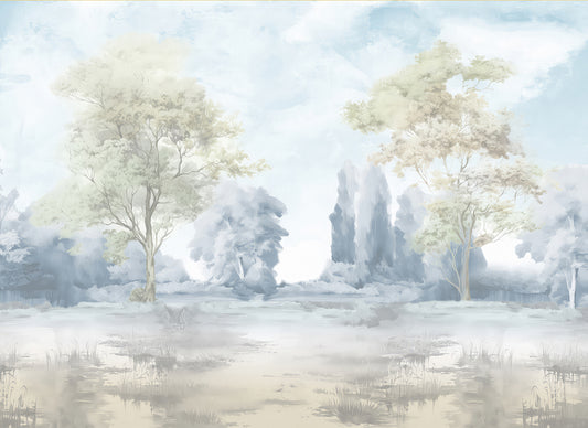 Misty Morning Forest Mural