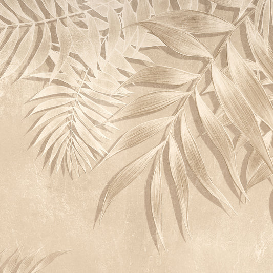 Textured Neutral Palm Leaves Mural