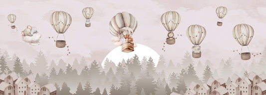 Adventurous Balloon Ride with Teddy Bears Wallpaper