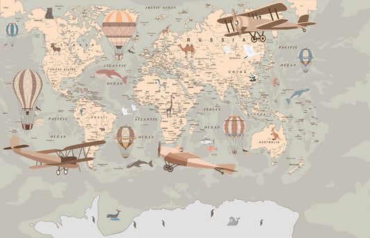Classic Vintage World Map with Hot Air Balloons Wallpaper
