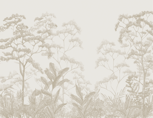 Serene Botanical Landscape Mural - Neutral Tone Forest Wall Art
