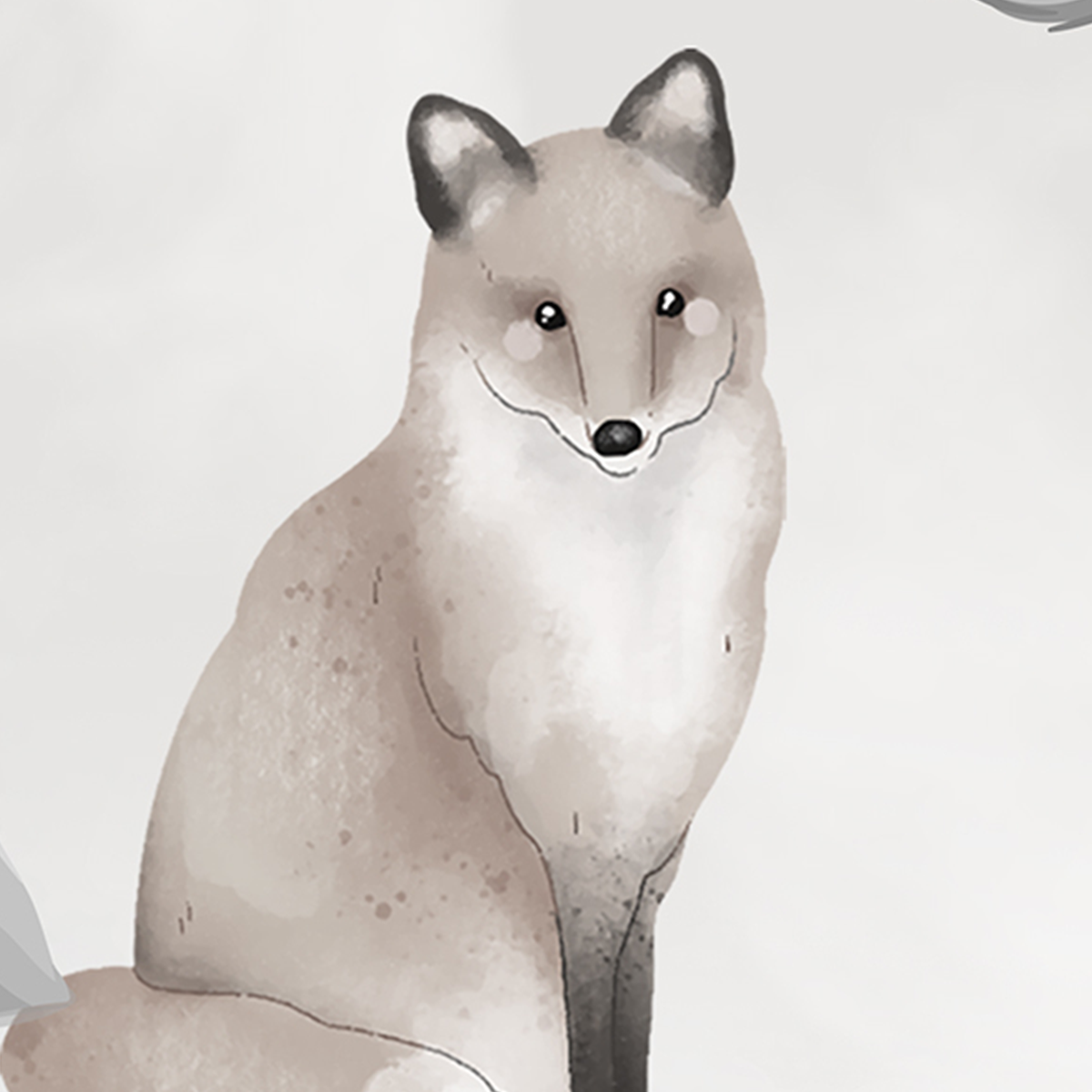 Elegant Safari Savanna Mural featuring Giraffe, Buffalo, Fox, and Birds in monochromatic gray and white tones. Sophisticated and educational design, perfect for Nordic/Safari-themed nurseries or kids' rooms.