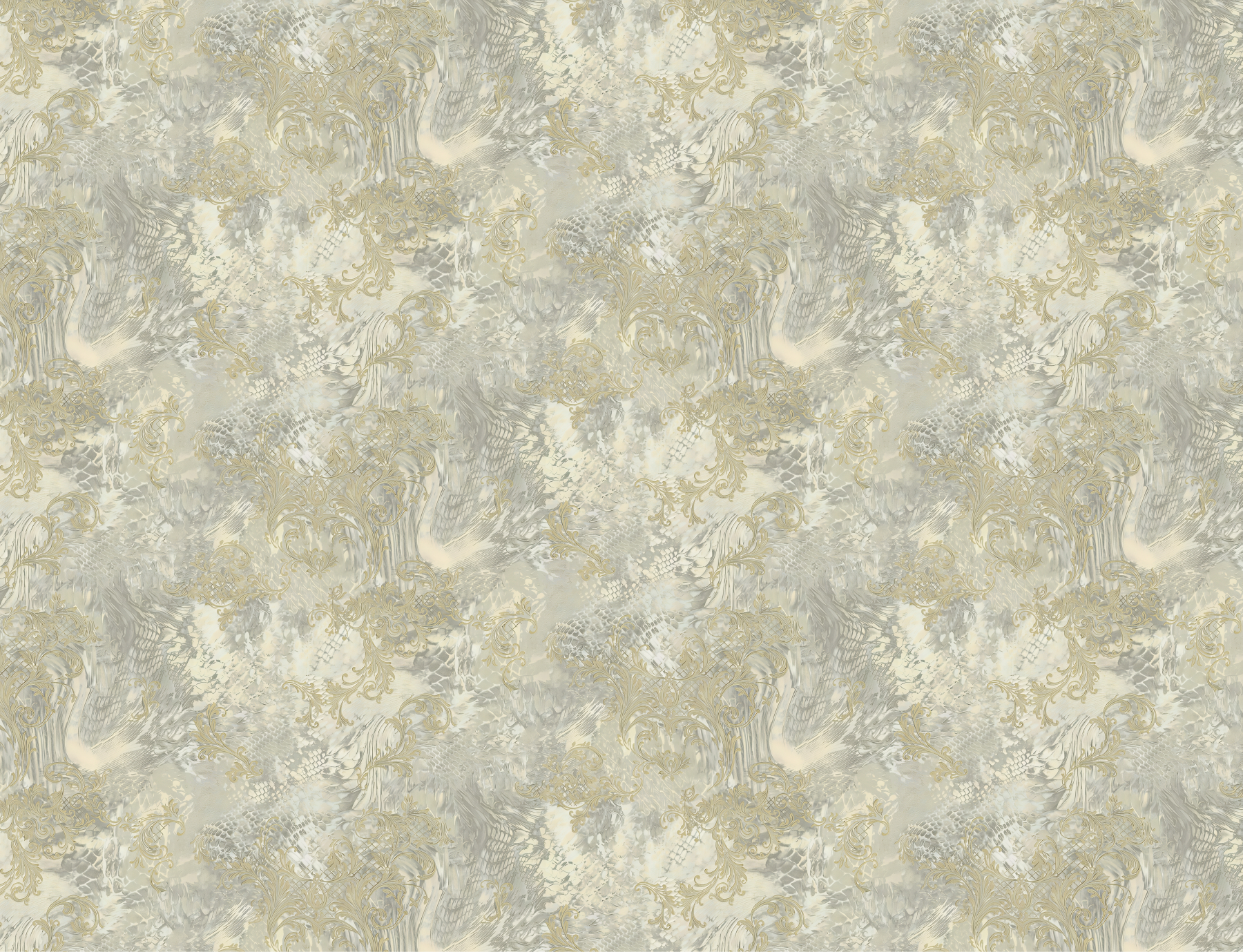 Elevate your living space with our Luxurious Gold Damask & Abstract Texture wall mural, a sophisticated blend of classic opulence and modern design. This striking wallpaper features intricate golden damask patterns intertwined with a contemporary abstract background of muted grays and creams. Perfect for a living room, dining area, or master bedroom, this mural adds a touch of grandeur and refined artistry.