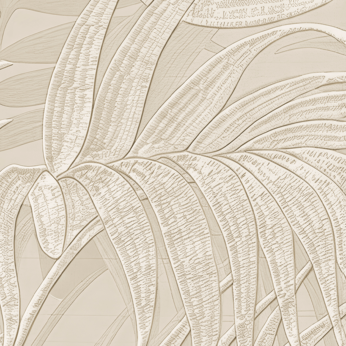 Introduce subtle texture and natural elegance with this sophisticated wall mural, featuring a delicate repeating pattern of tropical leaves in soft, warm beige tones. Its understated design creates a serene and inviting ambiance, perfect for bedrooms, living areas, or minimalist interiors seeking a touch of organic tranquility.