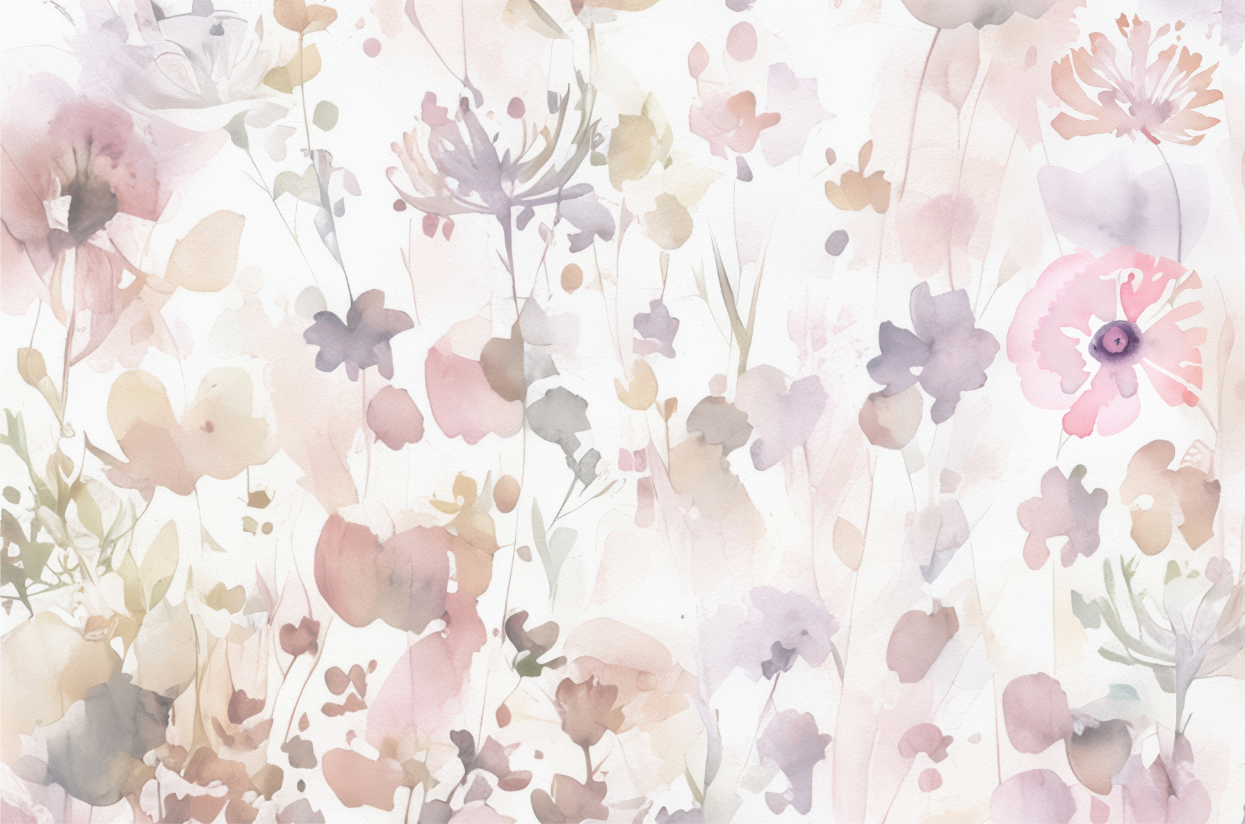 Adorn your bedroom with this exquisite watercolor floral mural, featuring a delicate array of flowers in soft pink, purple, and cream tones. Its gentle, ethereal design creates a serene and romantic atmosphere, perfect for a tranquil and sophisticated retreat.