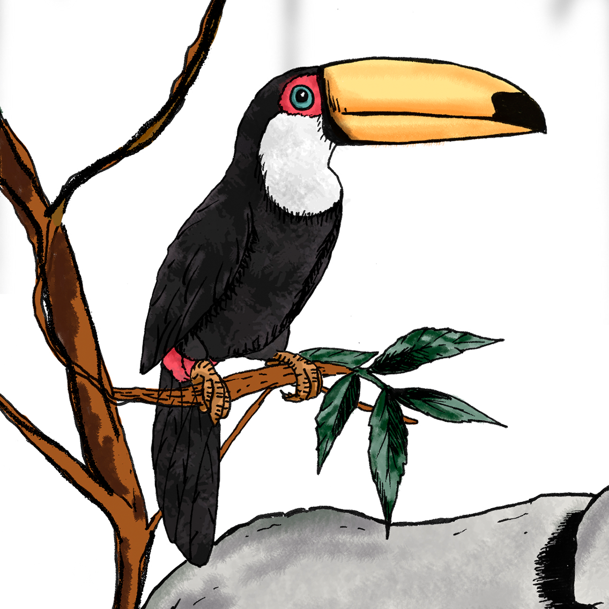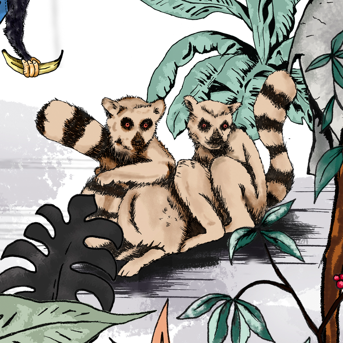 Tropical Jungle Mural Wallpaper with Animals and Palm Trees - Illustration Style