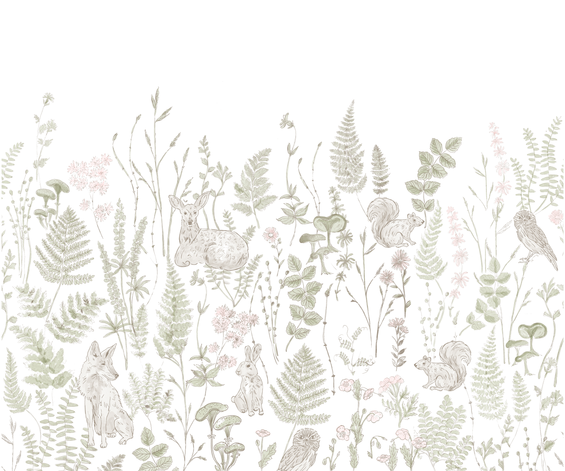 Woodland Creatures & Ferns Border Mural